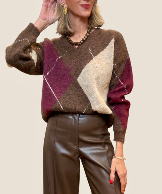 AgotadoJersey rombos marrón &amarillo