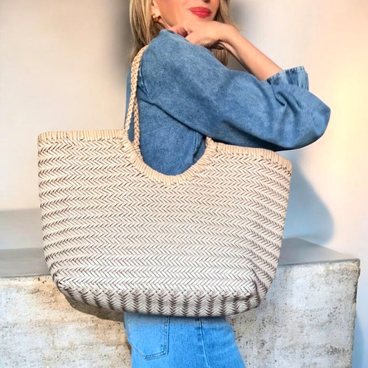 Bolso trenzado piel beige