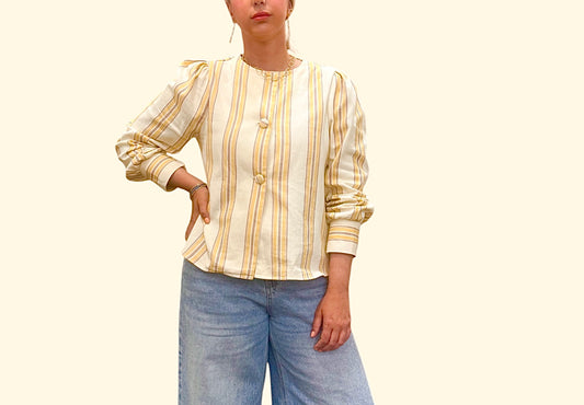 Chaqueta crema rayas mostaza & marrón