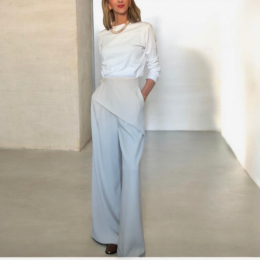 Pantalón pinzas asimétrico beige