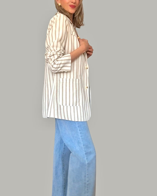 Chaqueta blazer rayas beige&camel