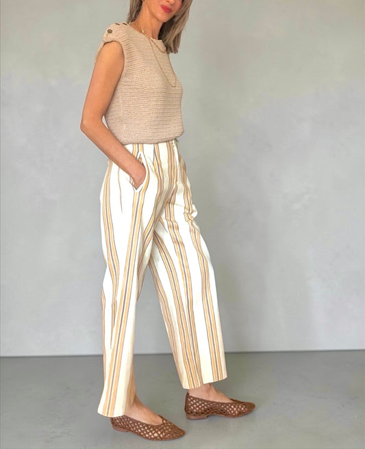 Pantalón crema rayas mostaza & marrón