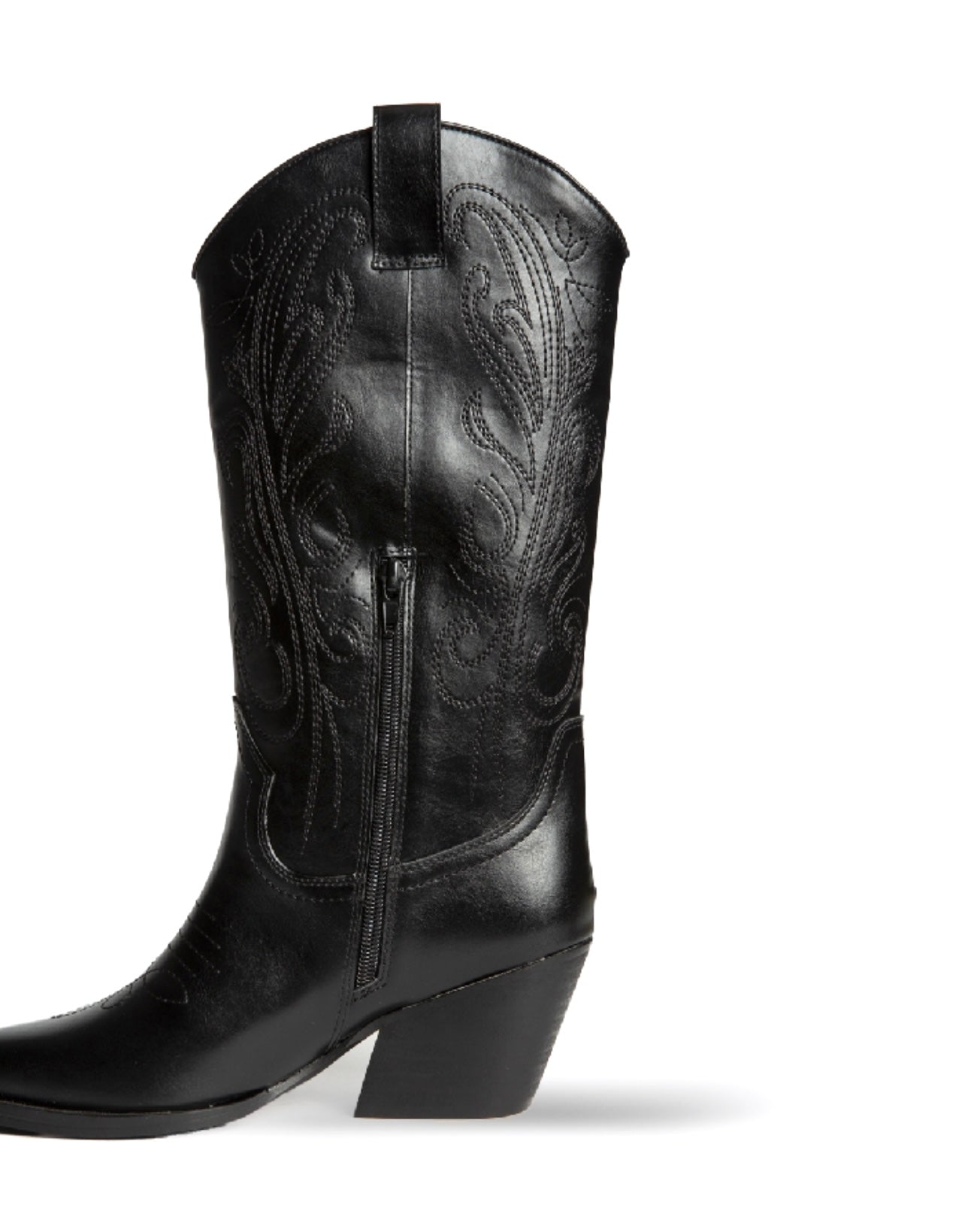 Bota estilo cowboy en color negro.Cierre con cremallera en la parte interior.