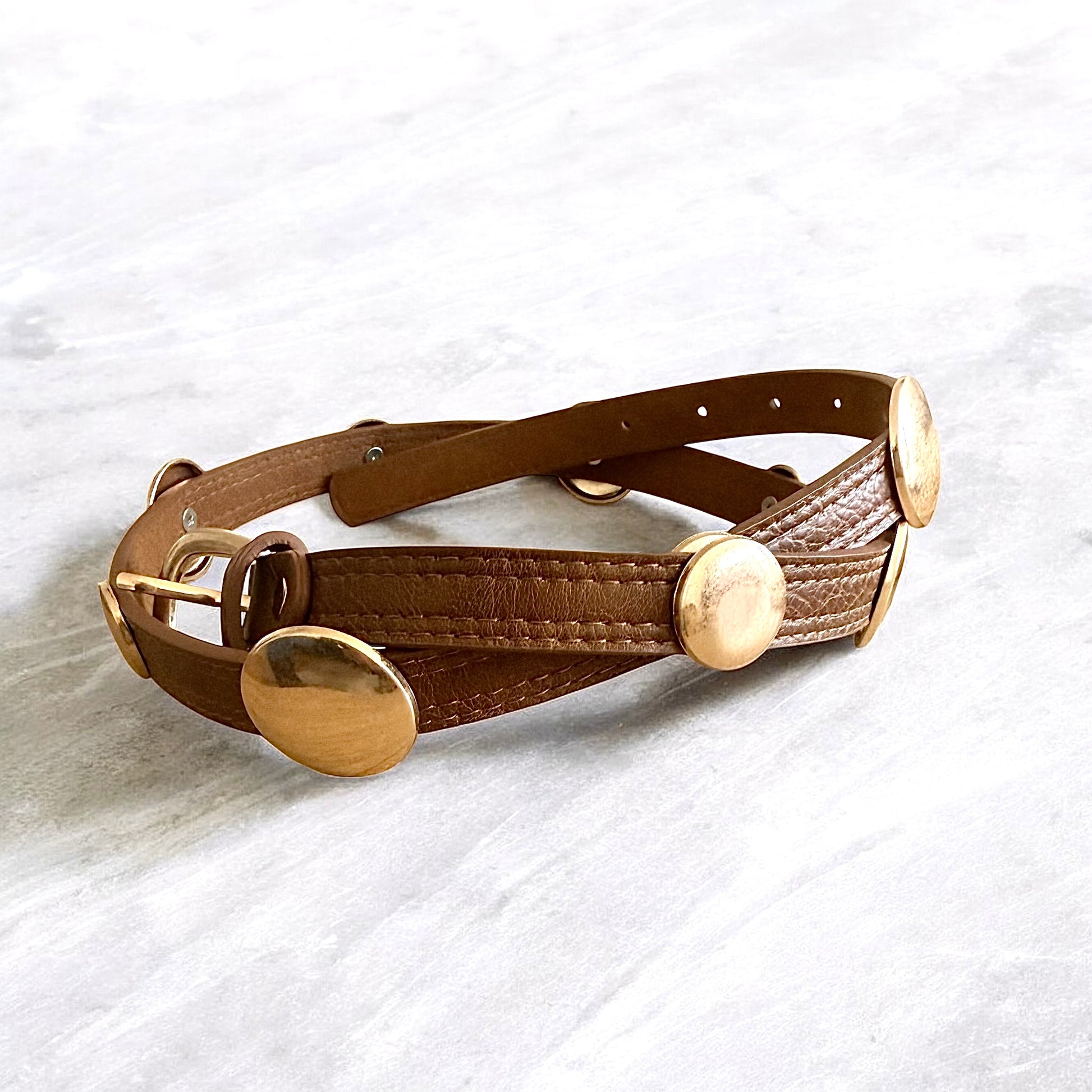 Cinturón círculos dorados marrón