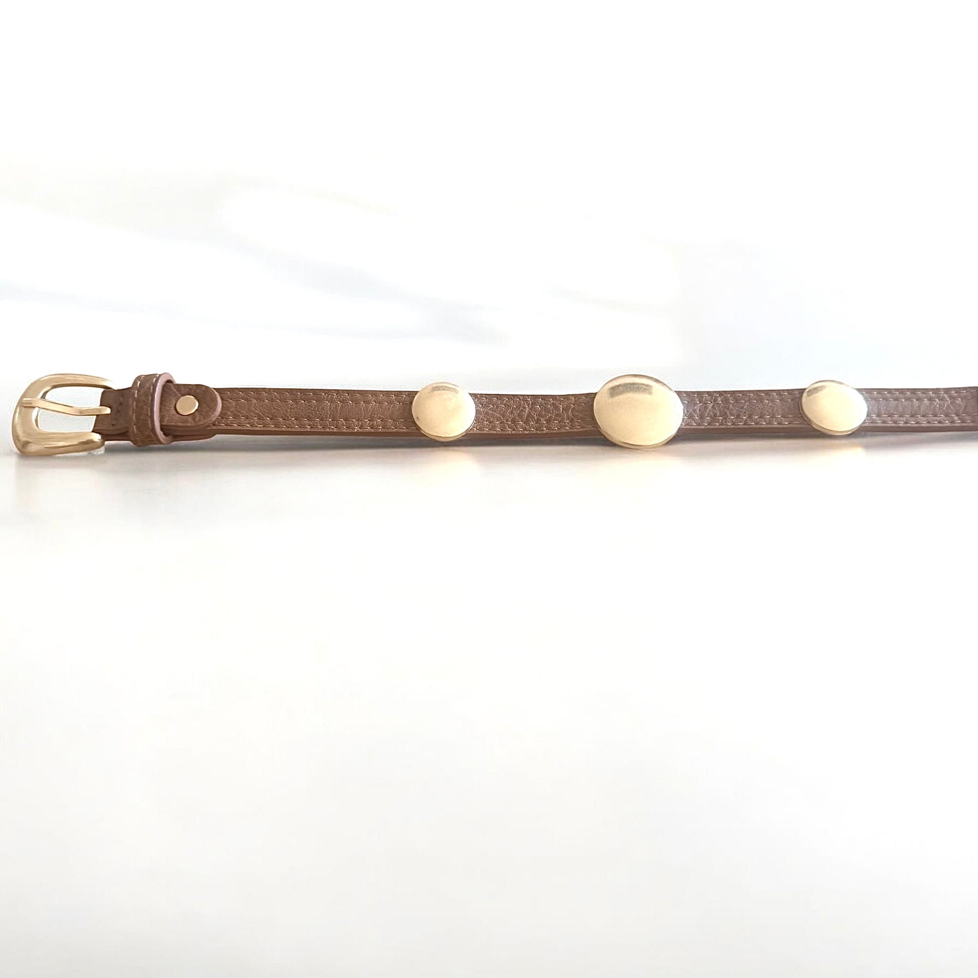 Cinturón en color marrón .Detalle de círculos dorados rematados.Cierre dorado.