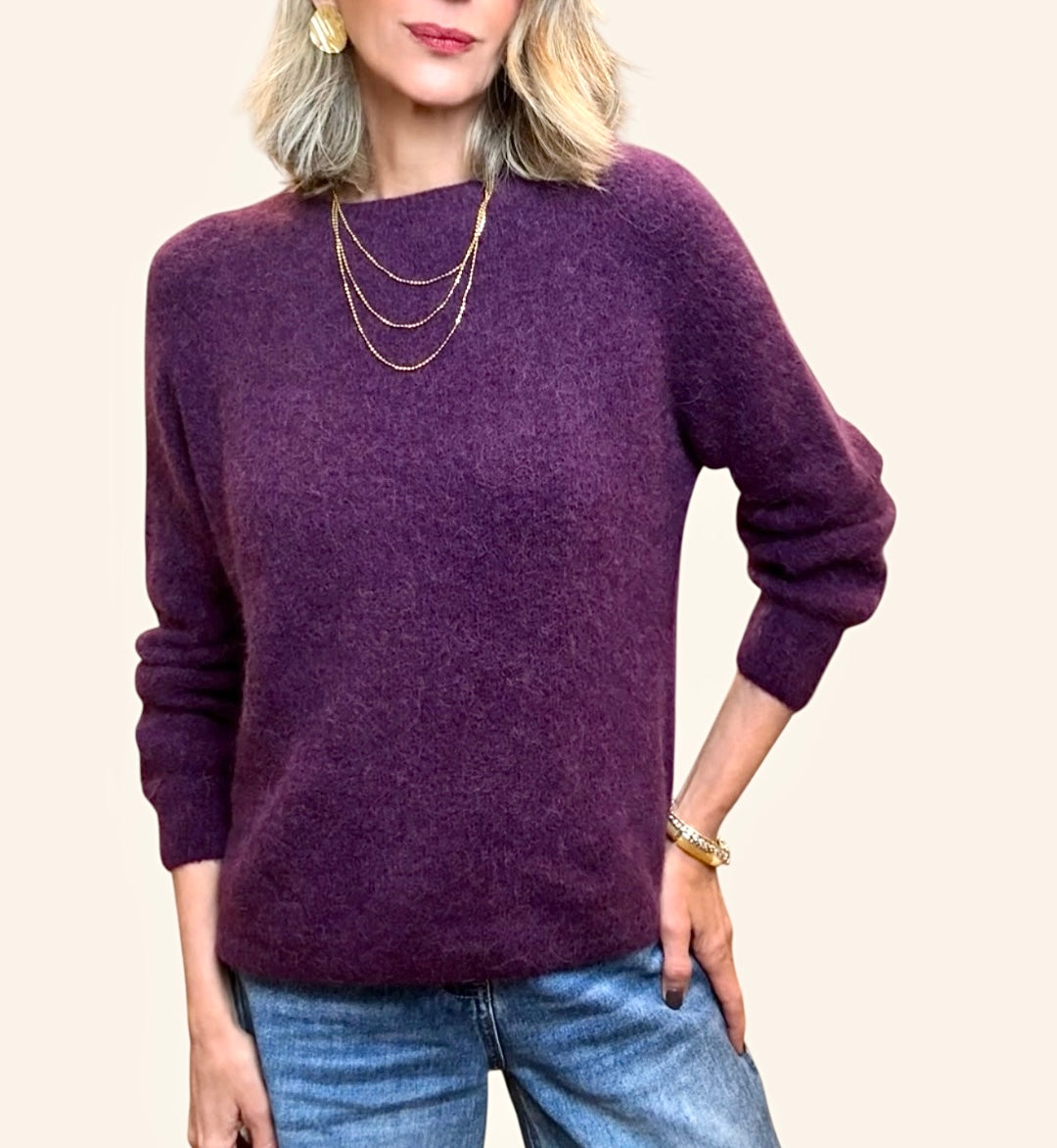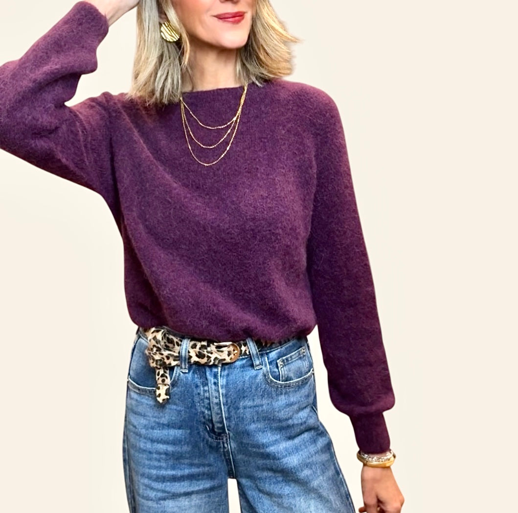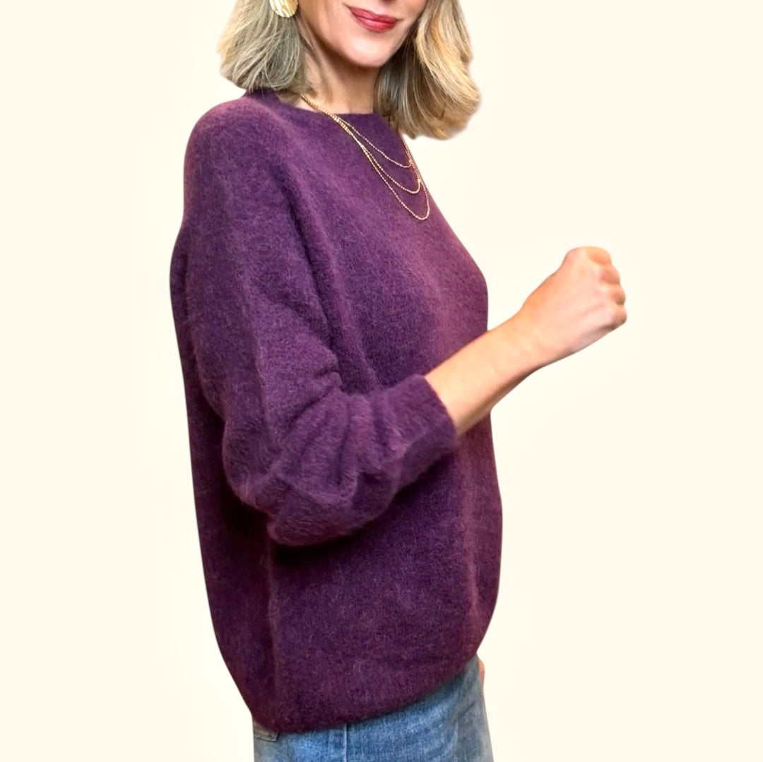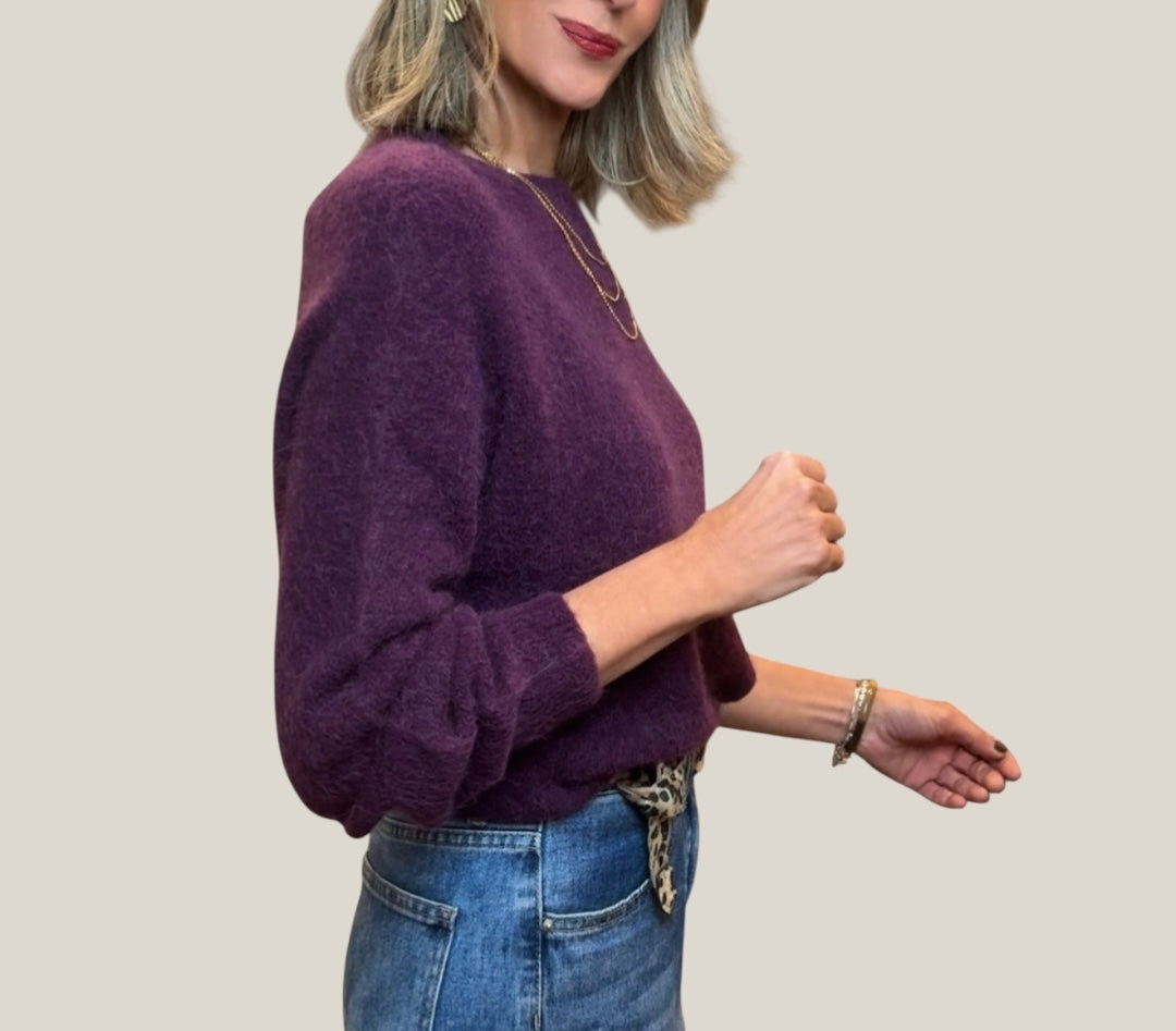 Jersey de punto en color berenjena .Cuello redondo.Tacto suave.