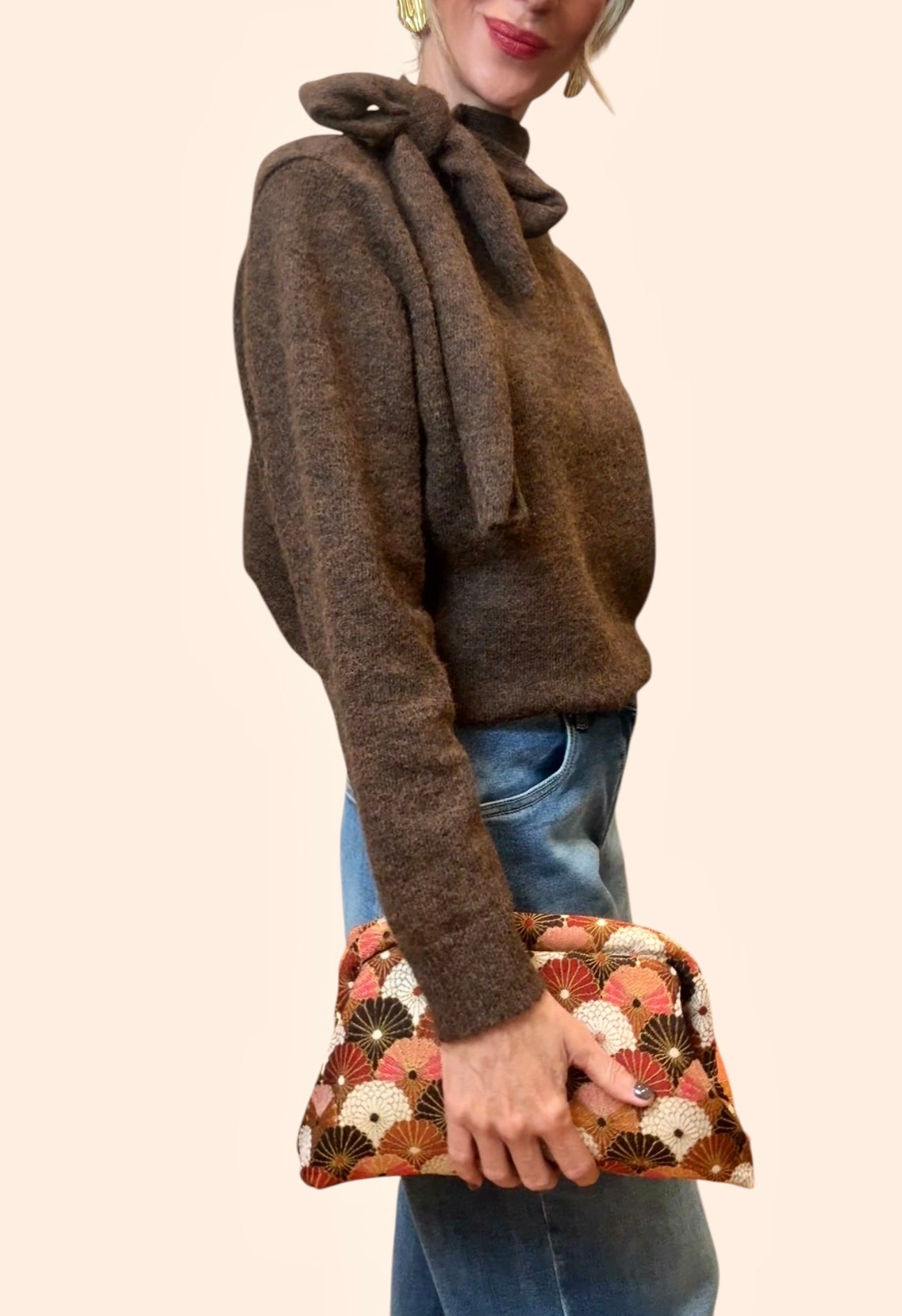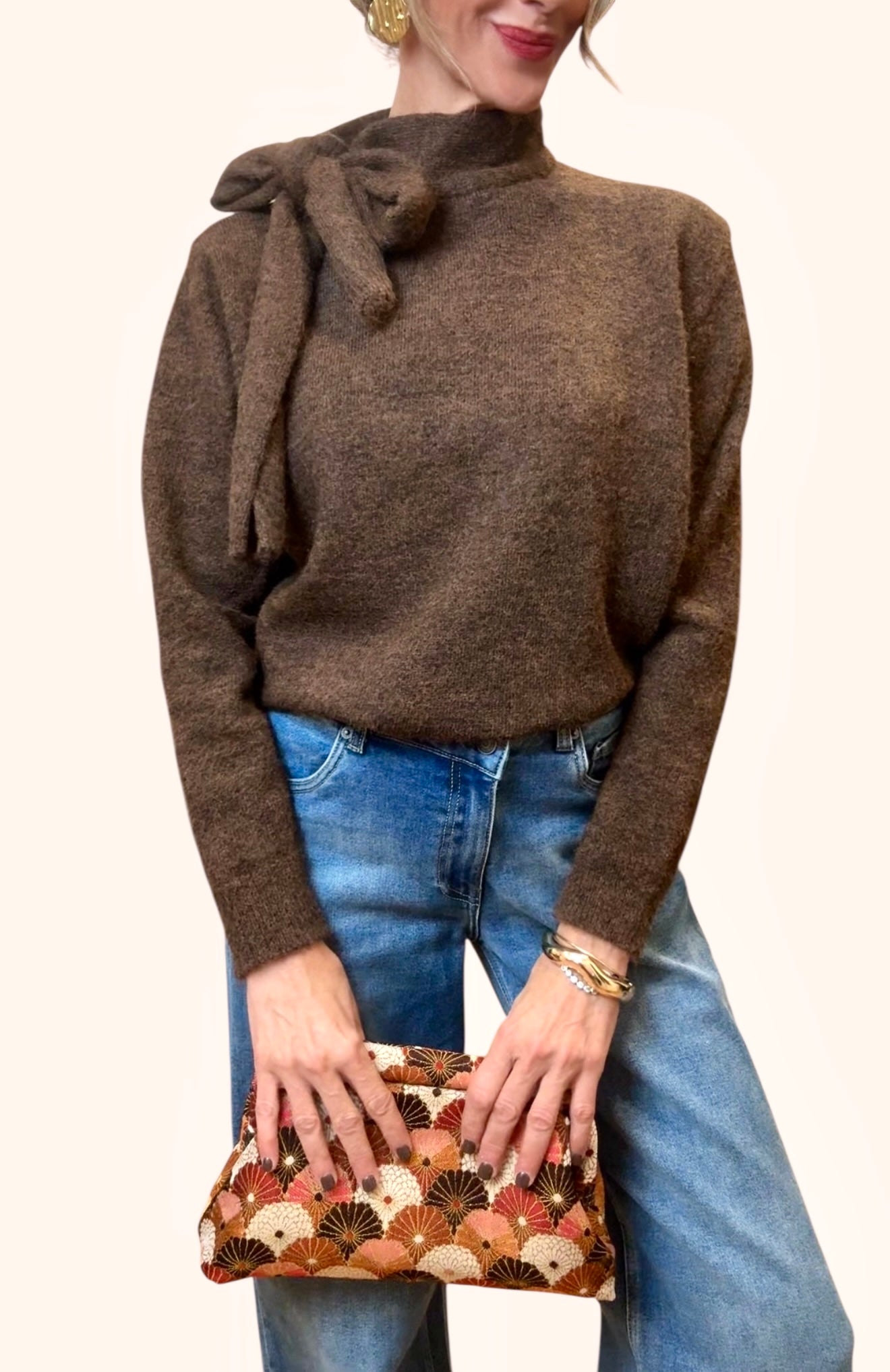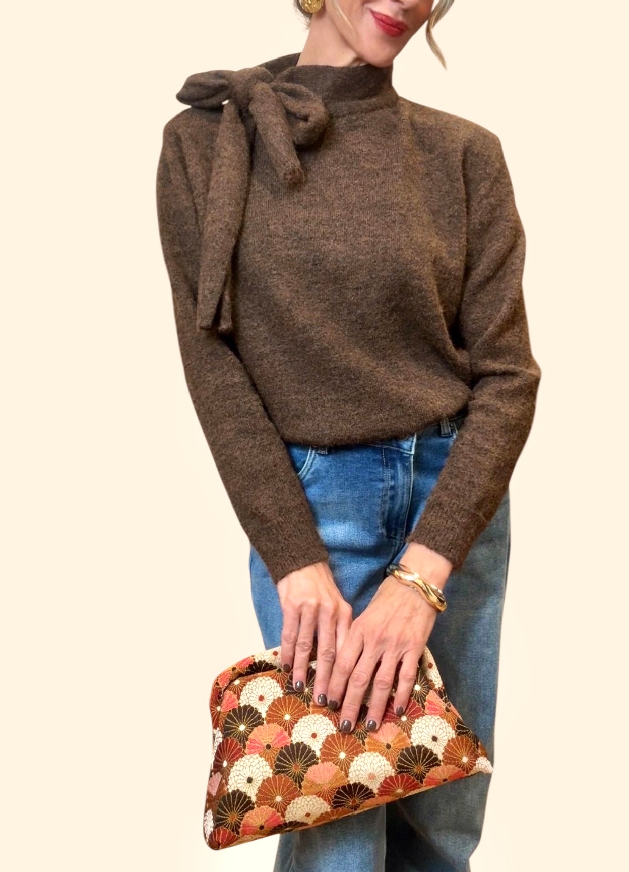 Jersey de punto en color marrón.Detalle de lazo en un lado .