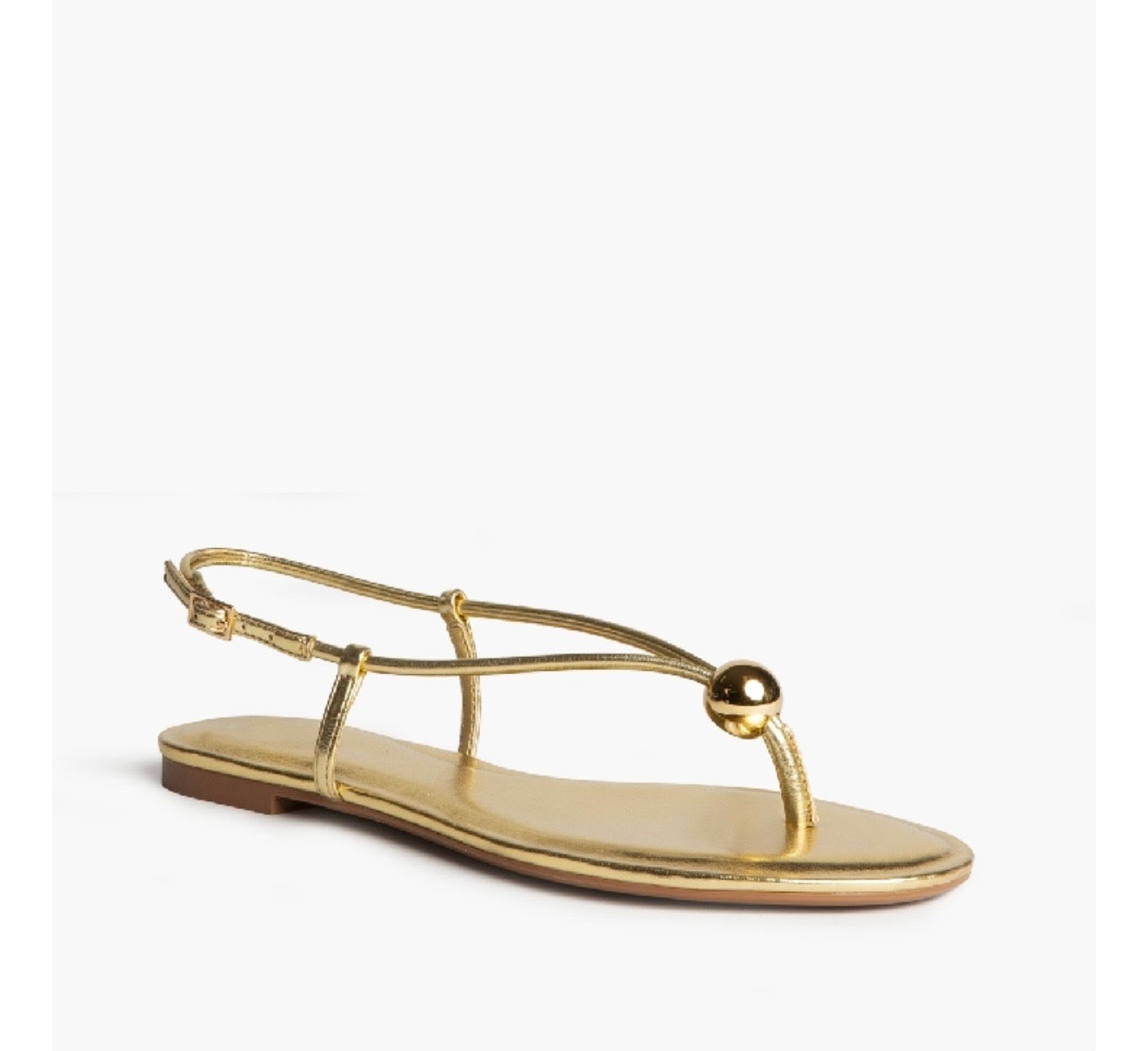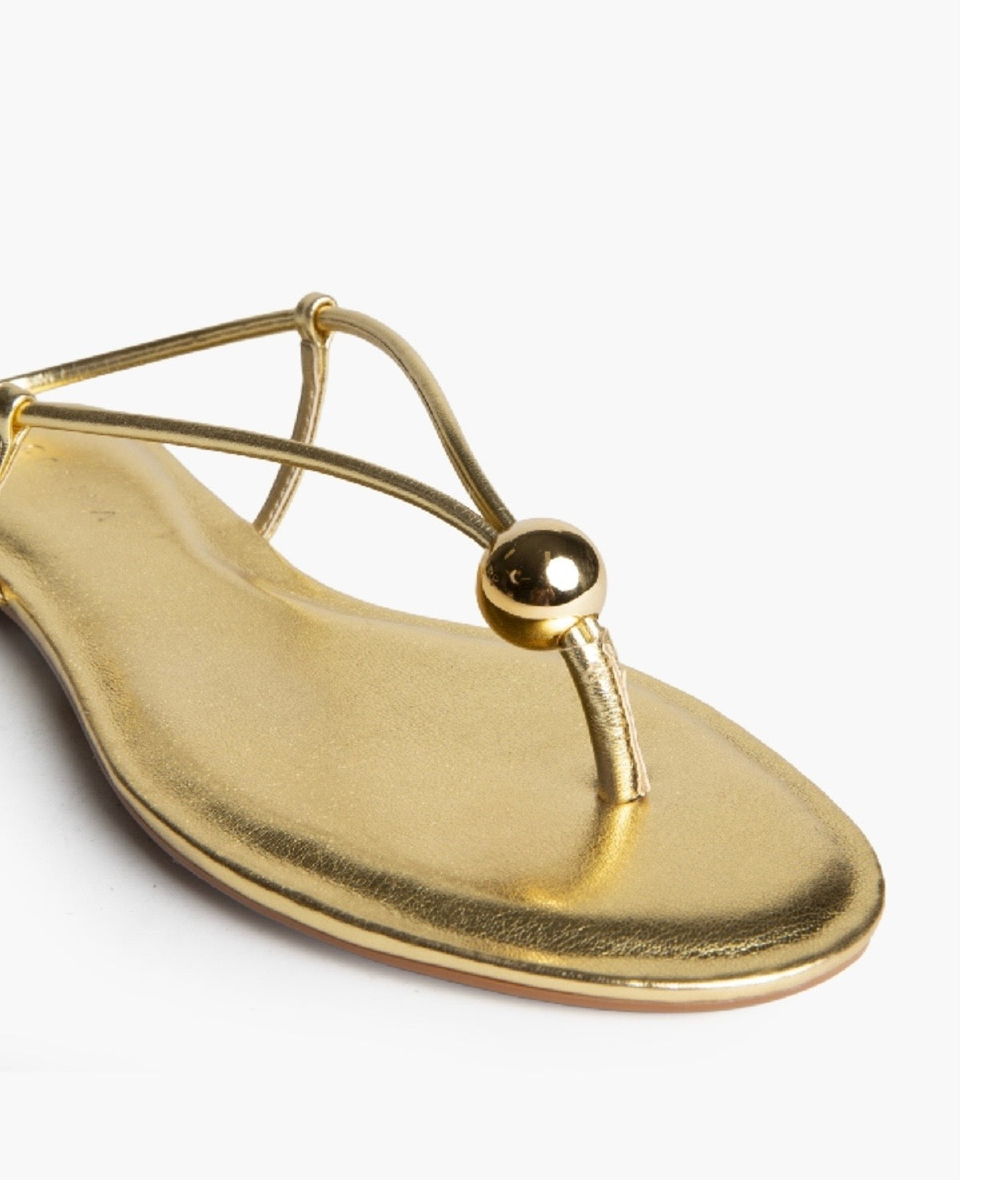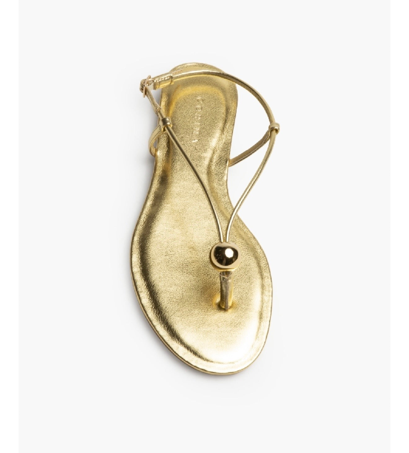 Sandalia en color dorado y detalle de bola en la parte de delante.